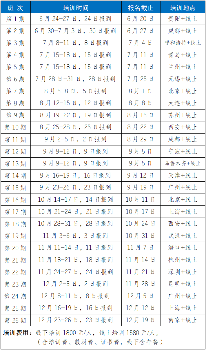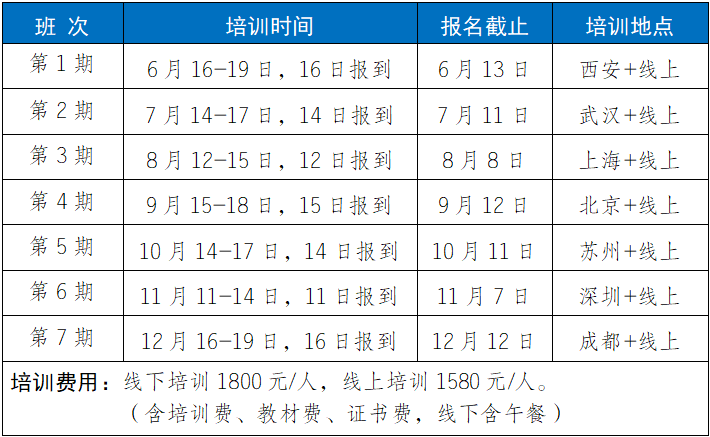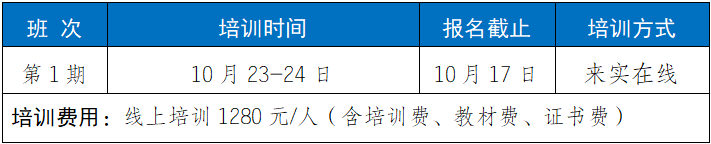 2.培训福利1)参加培训赠送正式出版的培训教材;2)每门培训课程开通之日起30天学习;3)培训结束考核合格颁发相应培训证书;4)针对工作中的实际问题提供免费在线答疑。