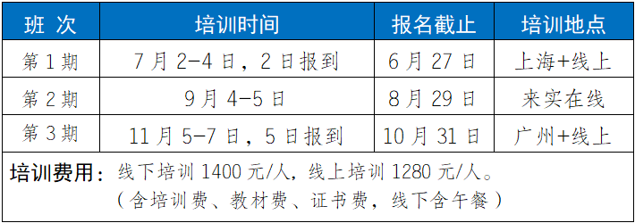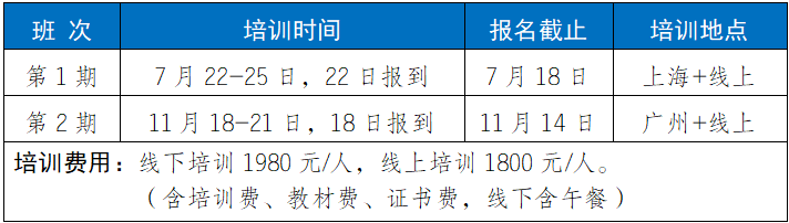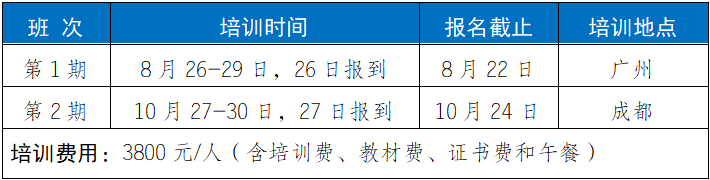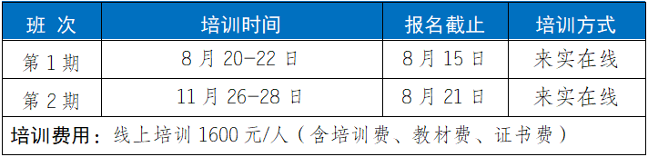 2.培训福利1)参加培训赠送正式出版的培训教材;2)每门培训课程开通之日起30天学习;3)培训结束考核合格颁发相应培训证书;4)针对工作中的实际问题提供免费在线答疑。